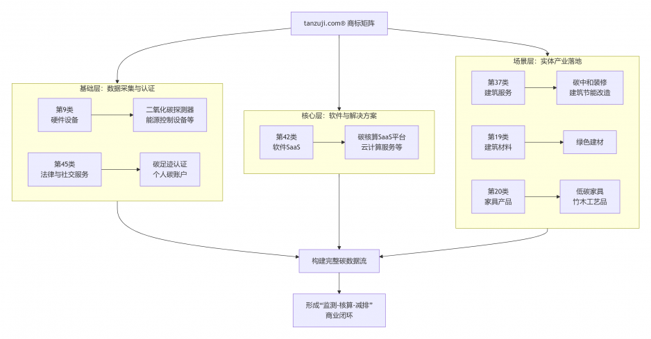 tanzuji.com®以完整的域名与商标矩阵,构建碳足迹管理赛道不可绕过的品牌壁垒。