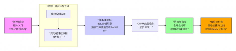 - 技术基座(第9/42类):拥有碳管理软件、SaaS平台、云计算与数据分析的完整品牌保护,是生态的“大脑”。